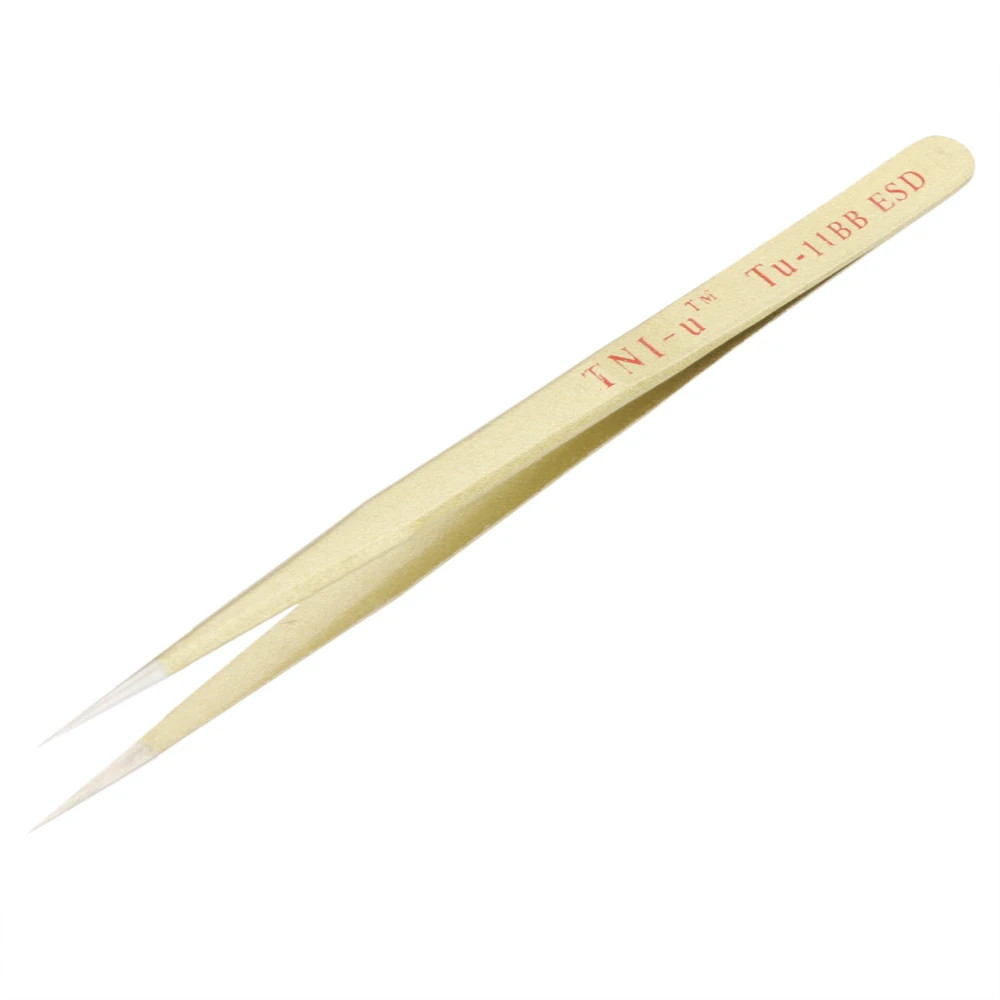 .Gallery of Tool 5.5'' Anti-static Golden Extra Long Straight Tweezers Nipper Clip Hand Tool Stainless Steel